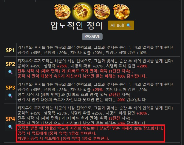 각 스킬의 SP4레벨에 도달해야 발동되므로